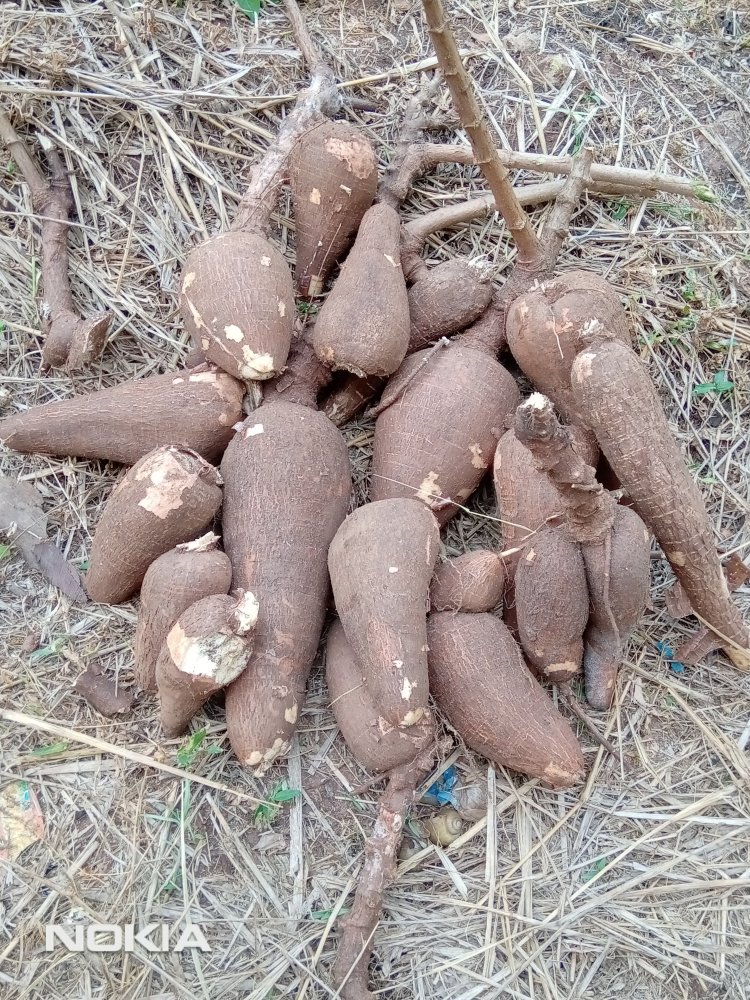 Ovim sits on arable land. Some of the tubers in the image are as big as fully grown yams! We noticed that most of the cassava tubers were eaten by rodents and white termites.