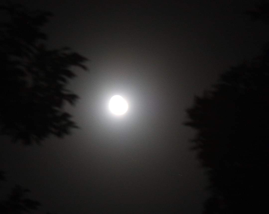 The moonbeams are like searchlights