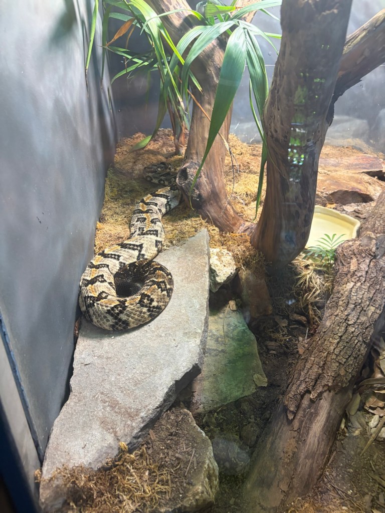 After that, we explored the reptile section, where an astonishing variety of reptiles greeted us. From sleek lizards to a mesmerizing array of snakes—cobras, mambas, boas, pythons, rattlesnakes—you could almost name them all. I didn’t see gators or crocs.